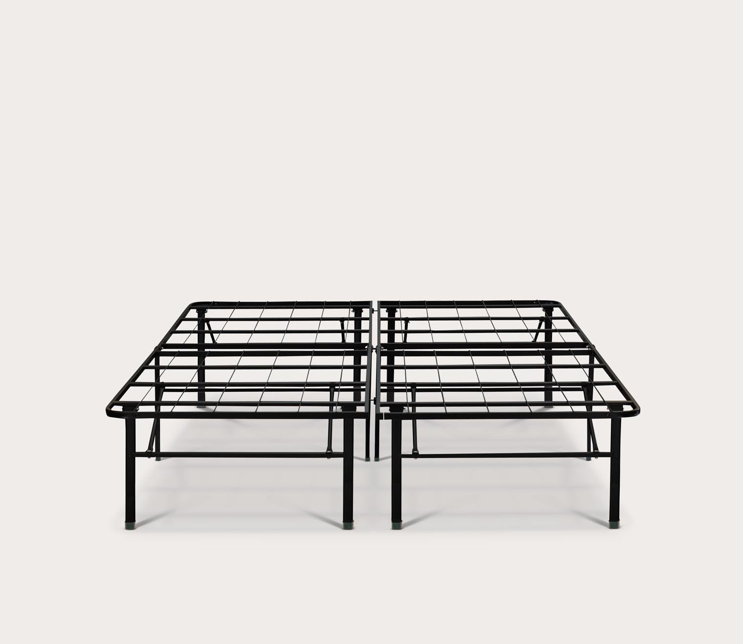 A convenient and affordable alternative to the traditional box spring or foundation, this 100-percent steel heavy-duty bed base with a black anodized finish assembles within minutes and features a compact size for easy transportation and maneuvering through stairwells and rooms. Whether used on its own or in place of slats— the center legs reinforce the middle, providing sturdy support for up to 2,500-pounds.