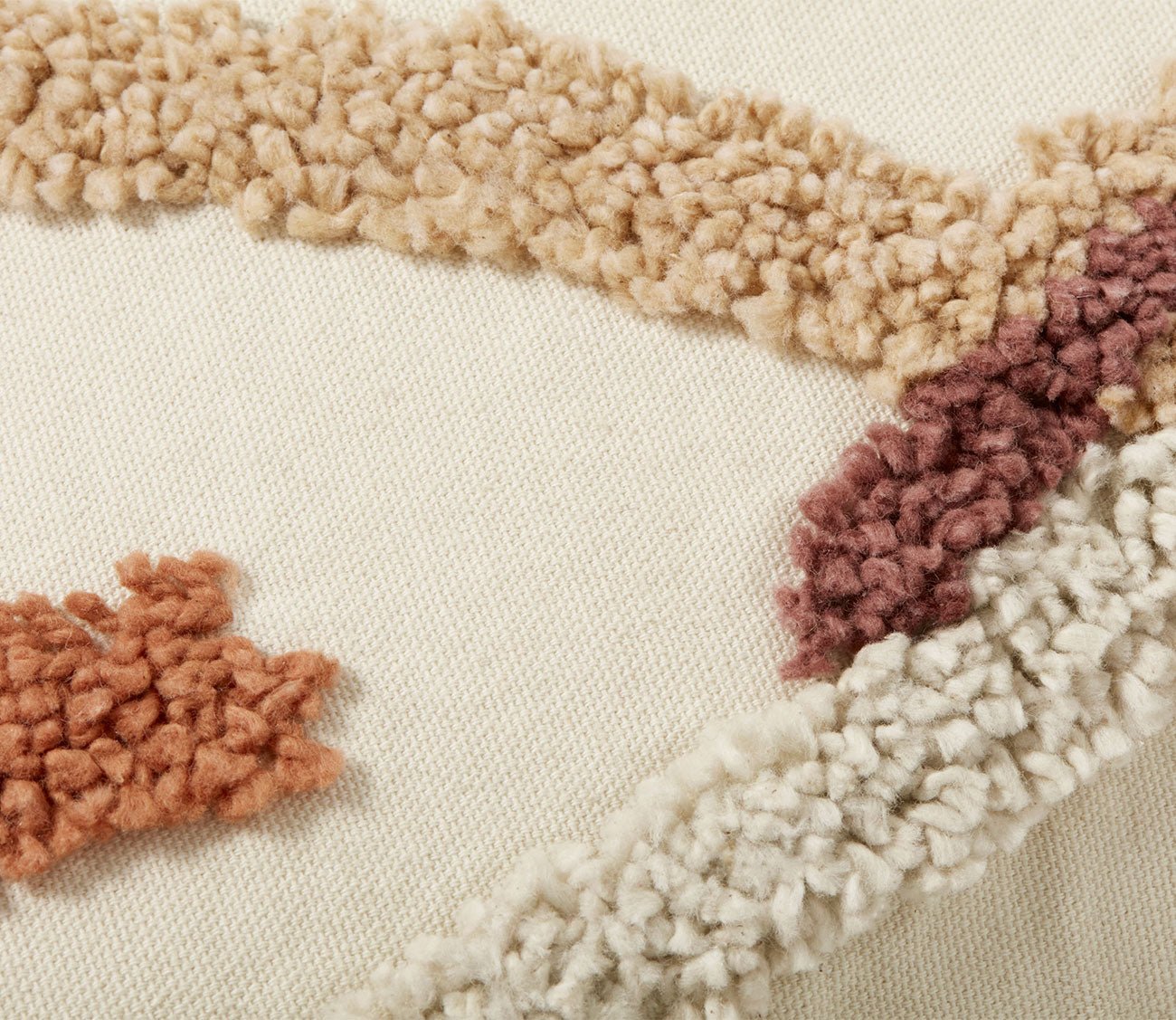 Made in India for quality comfort and style, Loloi’s Abstract Tufted Throw Pillow combines organic and modern appeal.