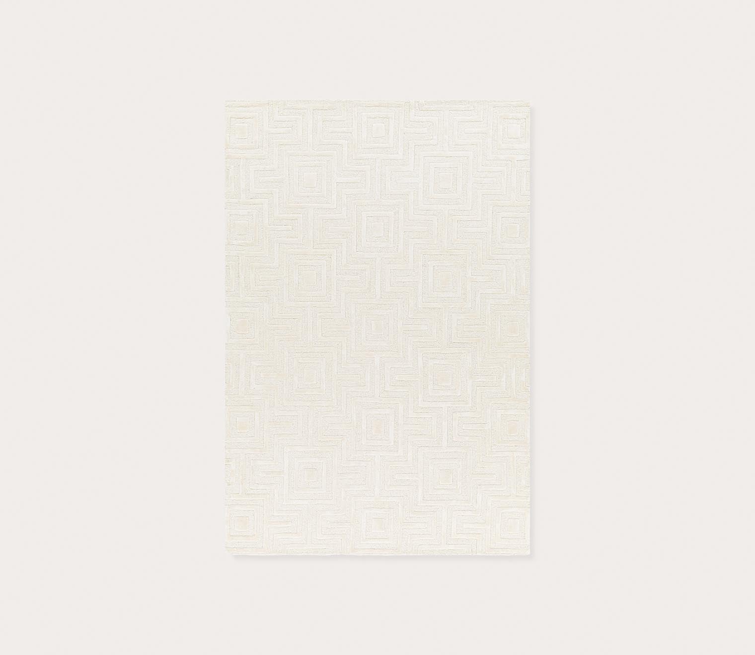 Handmade in India from wool and viscose yarns, this hand-tufted area rug displays a softly textured geometric pattern in tonal ivory hues. The high-low design and medium pile height provides a dimensional look and feel with a versatile, modern style.