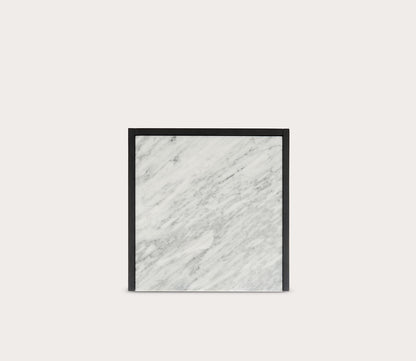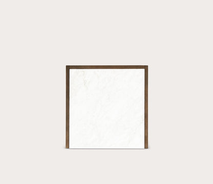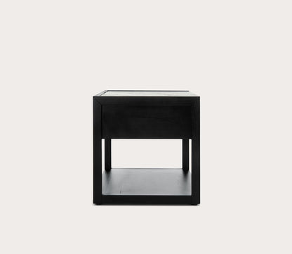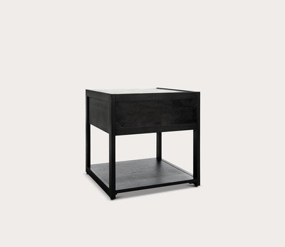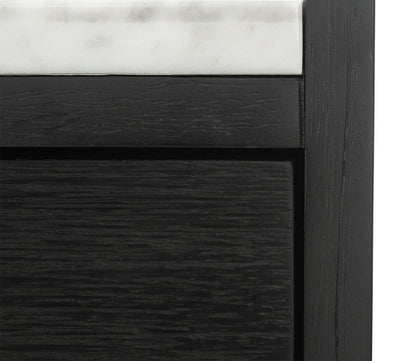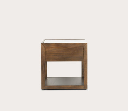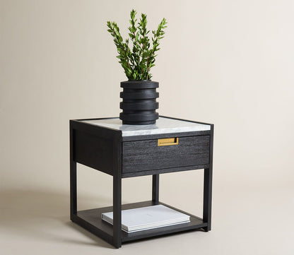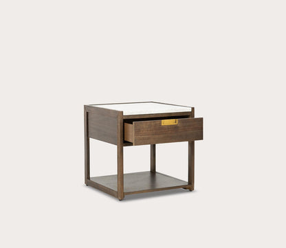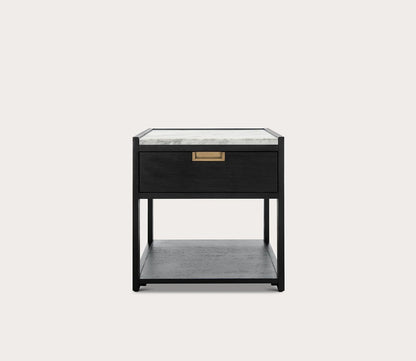 - One-drawer nightstand with marble top and brass handle