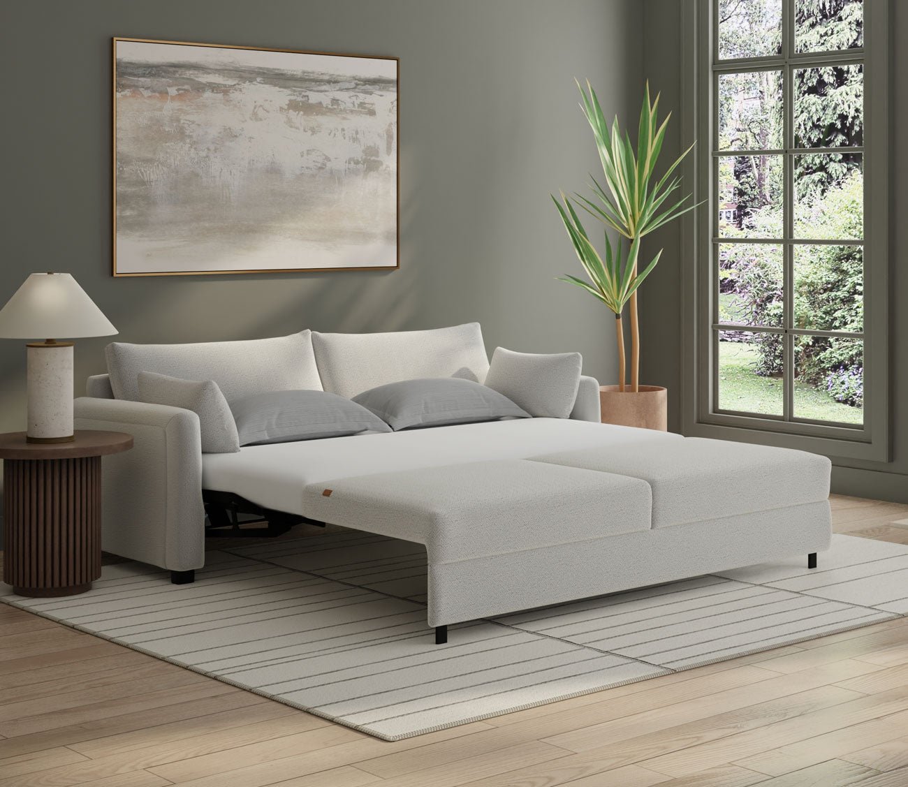 Stain-Resistant Performance Fabric: Resists water, spills, stains, and everyday messes to keep your sleeper sofa looking fresh. Ideal for family spaces and high-use living areas.