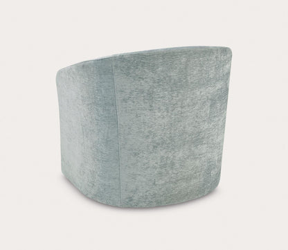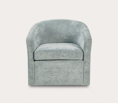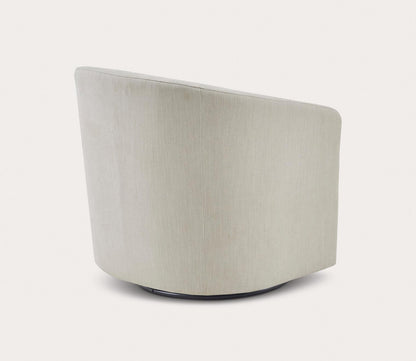 Simple and stylish with curved lines, Martha Stewart’s Amber Swivel Accent Chair arrives in your choice of ivory linen-blend fabric or light blue velvet upholstery. Bringing comfort, convenience, and a modern aesthetic to your living space, this swivel barrel chair features a low backrest that leads to armrests with supportive foam padding and a removable seat cushion. Perfect for curling up with a good book— the black-finished metal base allows a full 360-degree rotation and ease of motion.