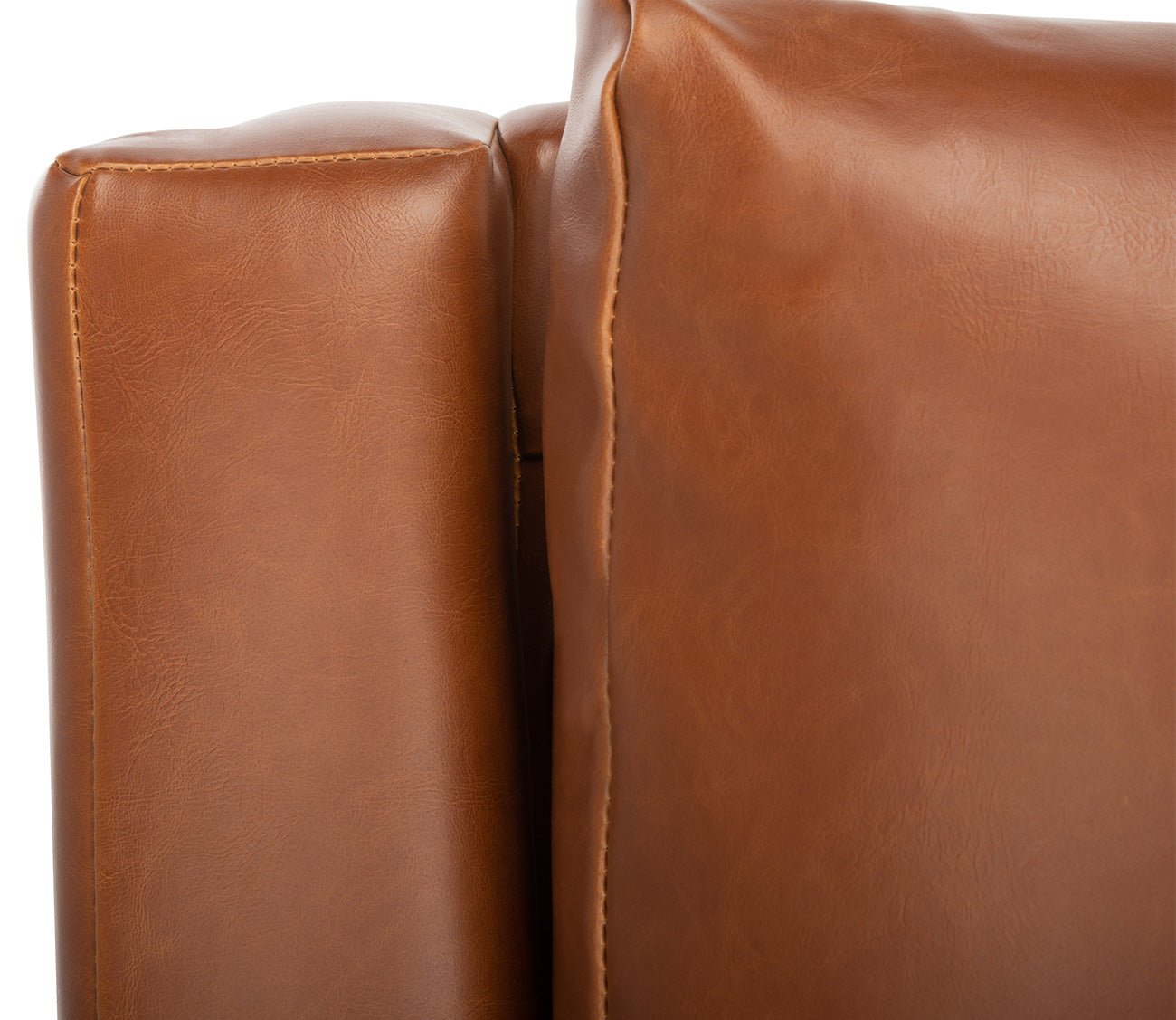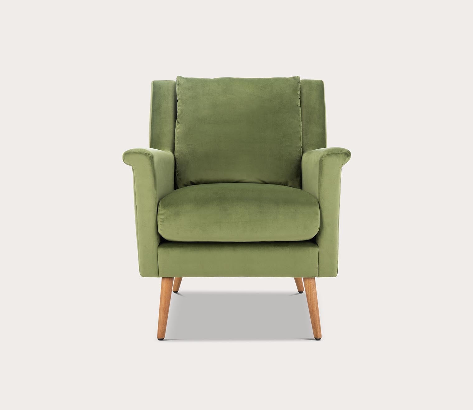 With welcoming comfort and plush foam-filled cushions, this upholstered accent chair with armrests features vegan cognac brown leather or stone grey, olive green, or navy blue velvet fabric enveloping the retro silhouette for a luxurious look and feel. A contemporary and fashion-forward take on a timeless style— the splayed solid oak wood legs durably support the lower profile frame.