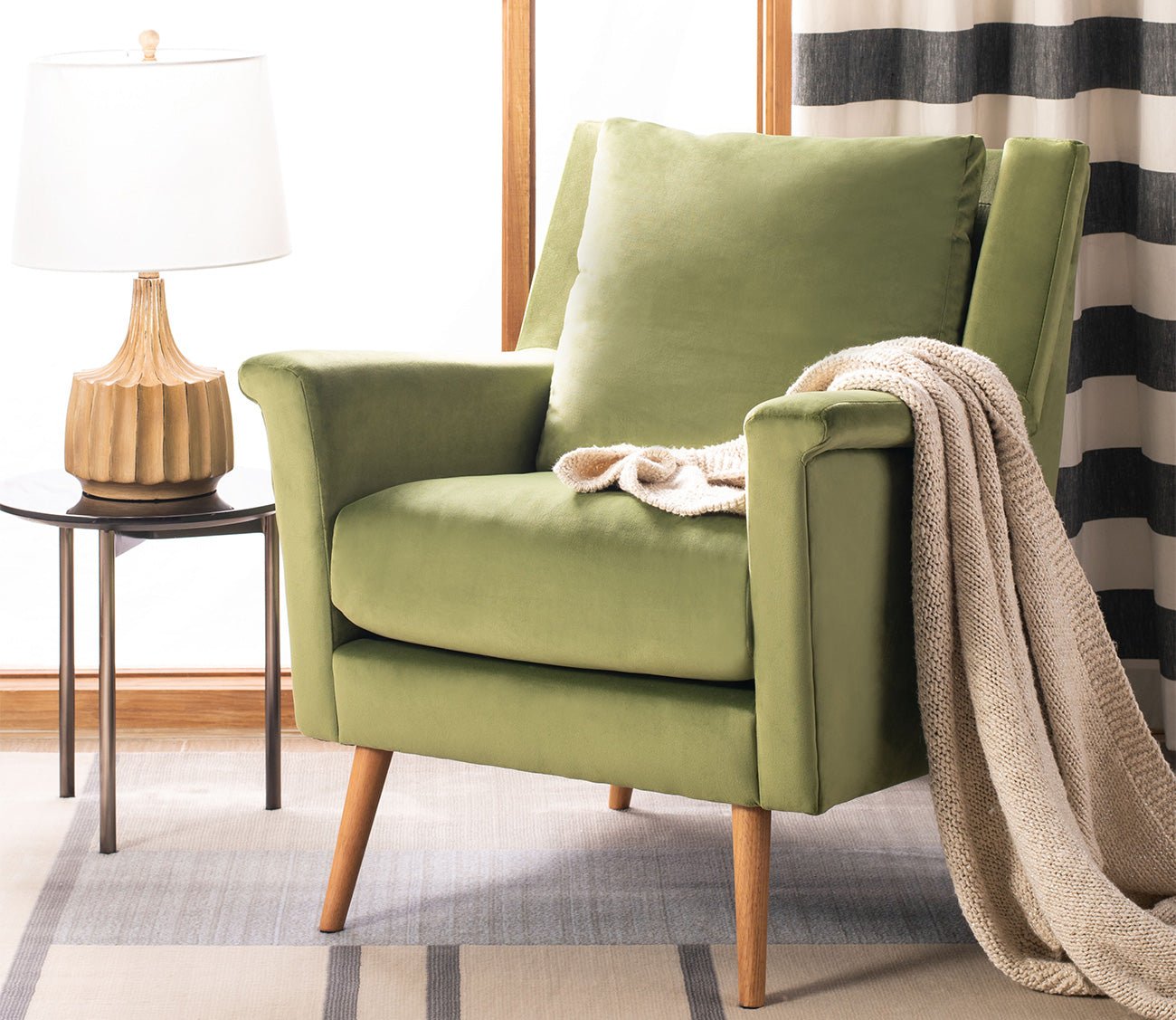 An equally chic and cozy addition to your seating area, Safavieh’s Astrid Mid-Century Armchair makes a stylish statement.