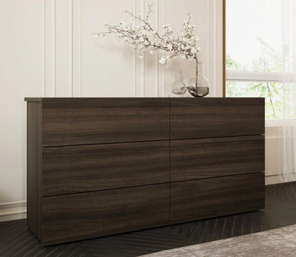 Sleek Italian craftsmanship meets everyday convenience with Casabianca’s Ayla 6-Drawer Double Dresser. Available in a dark oak, high gloss white, or matte taupe finish, this 63-inch-wide bedroom dresser brings a touch of understated luxury with its minimalist lines and modern design that complement virtually any aesthetic. The six spacious, soft-close drawers offer ample storage for all your cherished belongings, from clothing to bedding, blankets, and more.