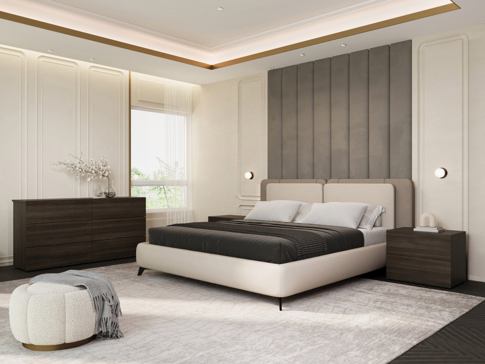 Available in a dark oak, high gloss white, or matte taupe finish, this 63-inch-wide bedroom dresser brings a touch of understated luxury with its minimalist lines and modern design that complement virtually any aesthetic. The six spacious, soft-close drawers offer ample storage for all your cherished belongings, from clothing to bedding, blankets, and more.