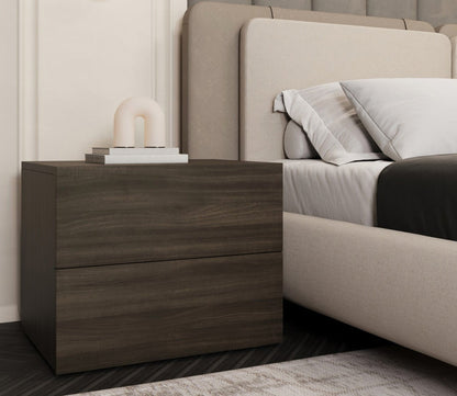 Transform your bedside into a showcase of style and functionality with Casabianca’s Ayla 2-Drawer Nightstand, featuring minimalist lines that effortlessly elevate your space. Crafted in Italy with impeccable attention to detail, this 25-inch-wide night table blends modern design with adaptable charm in a dark oak, high gloss white, or matte taupe finish. Two spacious, soft-close drawers combine practicality with quiet sophistication.
