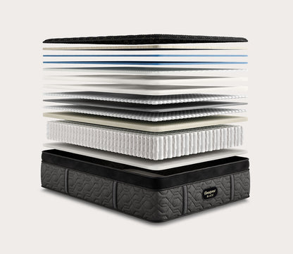 As the pinnacle of the Beautyrest Black® collection, the Series Four Firm Pillow Top Innerspring Mattress delivers firm, premium comfort with advanced, full-body support. Cooling foams and breathable layers work together to prevent heat buildup, while responsive memory foam cushions pressure points without excess sink. Dual layers of nano coils and a triple-stranded coil system adapt to your body’s movements and minimize motion transfer—so you stay cool, supported, and undisturbed all night.