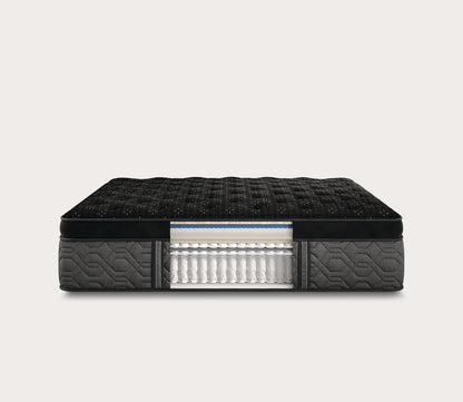 A customer favorite, the Beautyrest Black® Series Four Medium Pillow Top Mattress combines deep pressure relief with balanced, full-body support. A cool-to-the-touch cover and Sleep Climate™ Technology work together to prevent overheating, while layers of SurfaceTouch™ Gel Memory Foam and ventilated memory foam melt away tension the moment you lie down. Two responsive layers of nano coils adapt to your body for targeted comfort, and breathable latex adds a touch of buoyant lift. Deep in the core, triple-stranded pocketed coils provide sturdy support and minimize motion transfer.