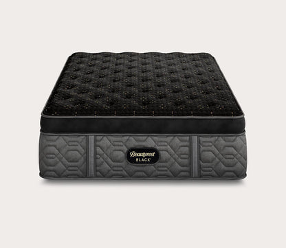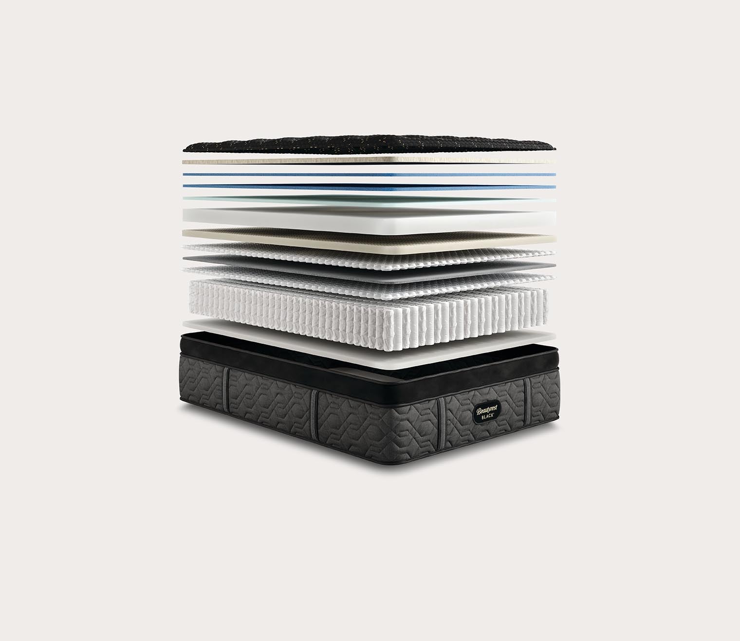 If you love a cloud-like feel with targeted support, the Beautyrest Black® Series Four Plush Pillow Top Innerspring Mattress is made for you. It gently hugs your body with pressure-relieving foams and keeps you cool with built-in temperature control. Two layers of nano coils adjust to your shape, while a sturdy base coil system helps reduce motion—so you won’t feel your partner move. It’s the perfect mix of soft comfort and strong support for deeper, more restful sleep.