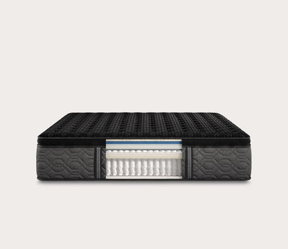 If you prefer a firmer feel without sacrificing comfort, the Beautyrest Black® Series Three Firm Pillow Top Innerspring Mattress is a longtime best seller. Cooling technology and pressure-relieving foams gently cushion your body, while responsive latex and nano coils deliver targeted, adaptive support. Deep inside, a sturdy base coil system enhances stability and minimizes motion—so you sleep soundly even if your partner moves.