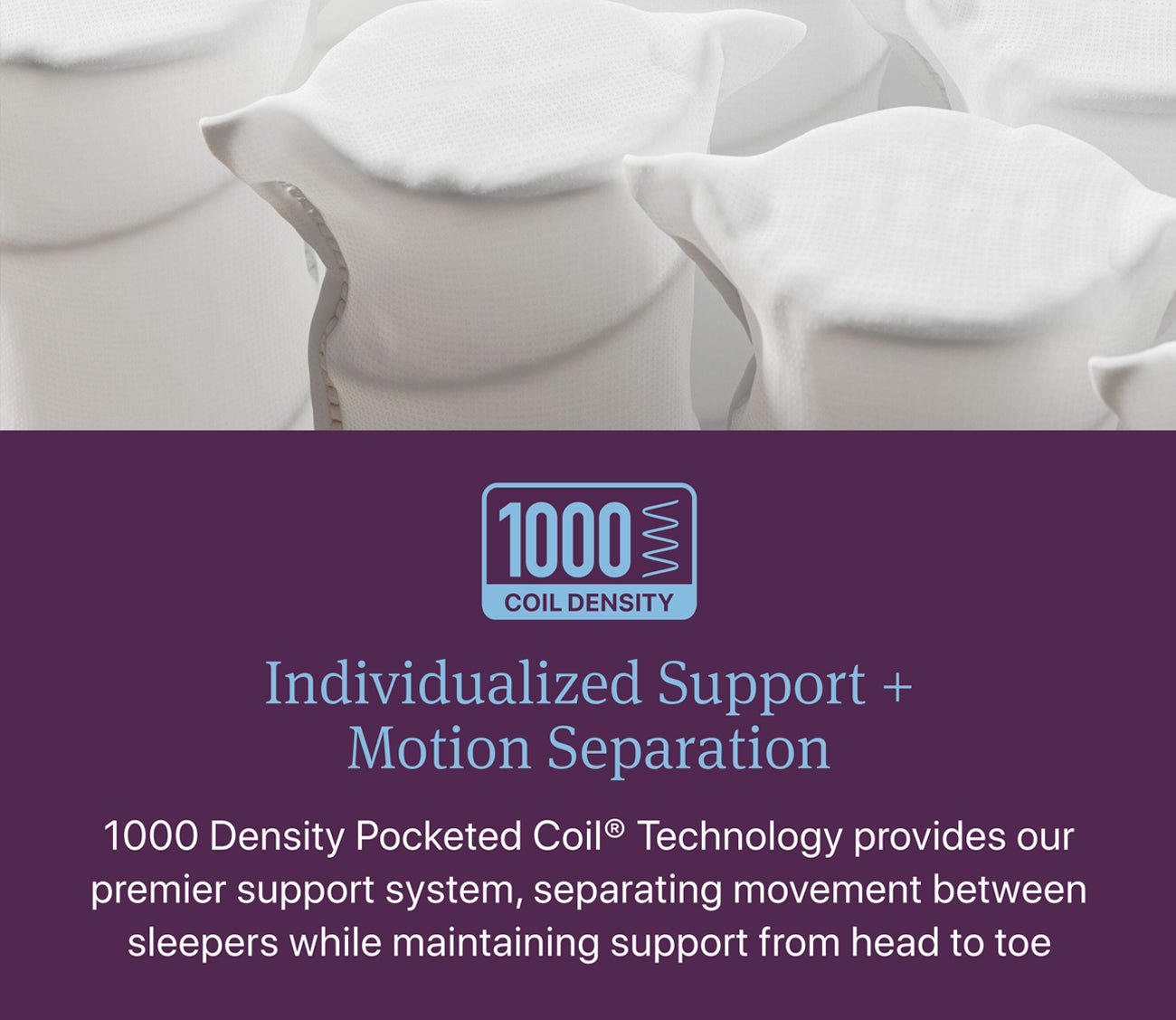 Benefits: Responsive and contouring pressure relief, individualized coil support, cooling and breathability, motion separation, and long-lasting durability.