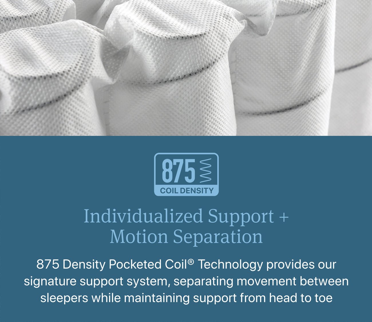 Benefits: Contouring pressure relief, individualized coil support, motion separation, cooling breathability, and long-lasting comfort.