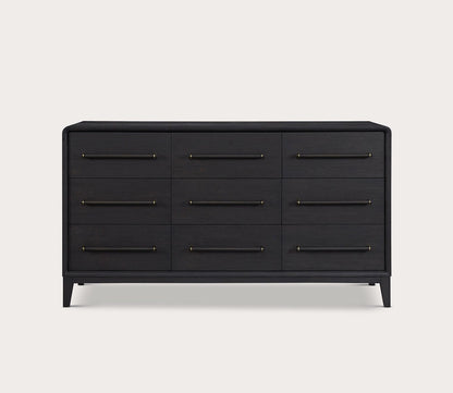 Step into a sanctuary of modern luxury with Bernard Furniture Group’s Elure Panel Bedroom Set, arriving with 3-pieces, 4-pieces, or 5-pieces. Including a queen or king size panel bed with minimalist vertical slat design elements, the contemporary rounded edges and sleek peppercorn black finish exude sophistication. With a 3-drawer nightstand, 9-drawer dresser, or 5-drawer chest— built-in USB ports within the bedside table, elongated pulls, and smooth silhouettes combine for a stylish and functional ensemble.