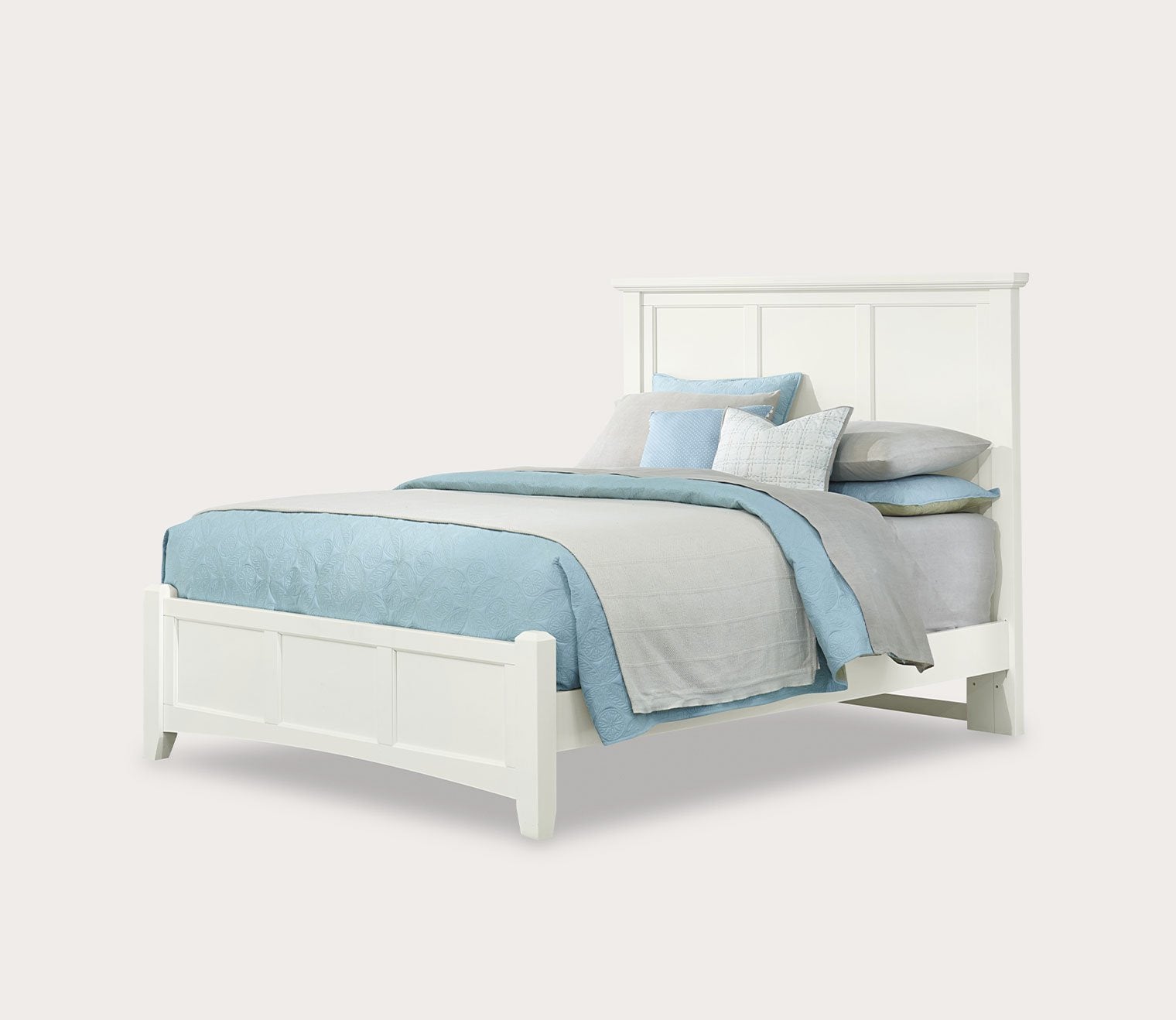 Anchor your bedroom in the minimal, Shaker-inspired simplicity of Vaughan Bassett's Low Profile Wood Paneled Bed in white. Featuring a classic headboard and footboard with recessed panels— this white wood bed set's tasteful moldings create a transitional appeal that works well in coastal, traditional, and farmhouse interior aesthetics. Sustainably handmade in the USA, the high-quality construction of North American hardwood, cherry veneers, and solid poplar wood accommodate your preferred mattress and box spring with strength and stability for generations to come.