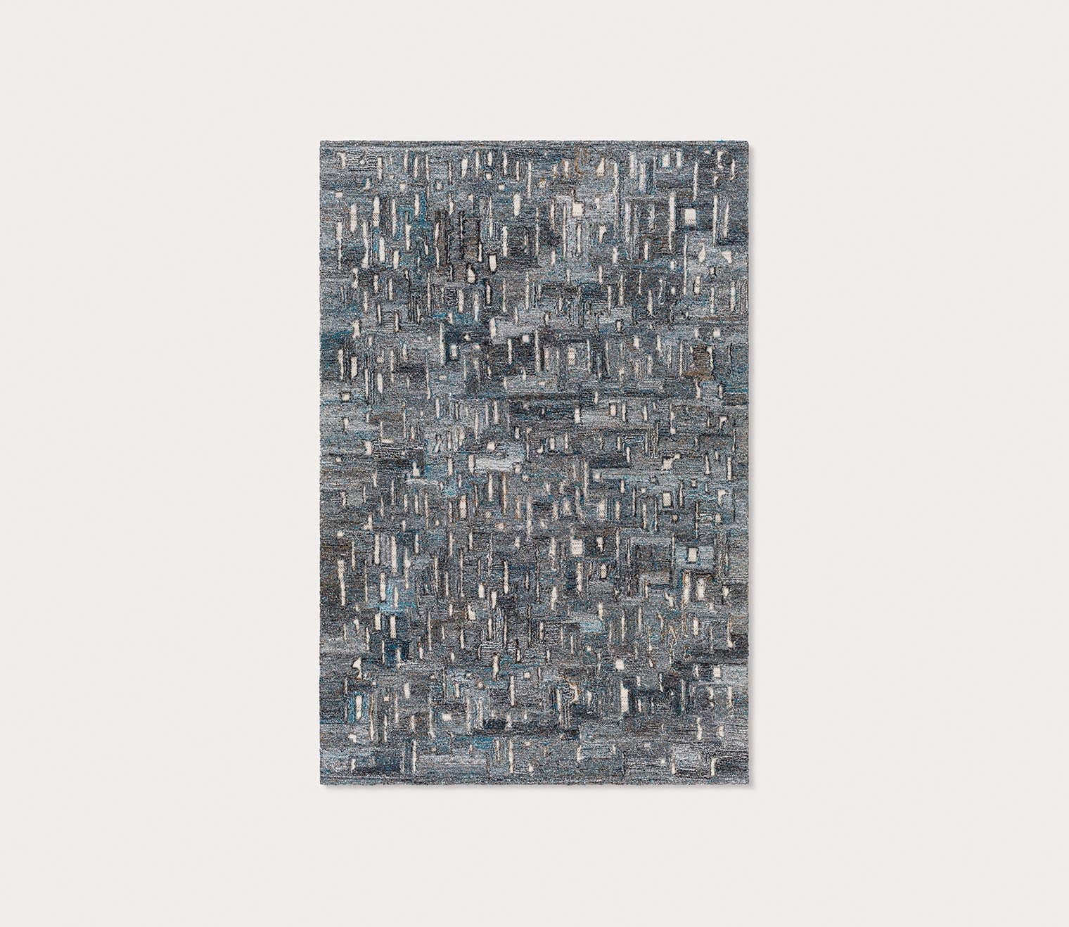 With high-low dimensional texture, this hand-tufted area rug features an abstract design with a range of cool blue and grey hues for a tonal look. Intricately made in India, the environmentally friendly recycled polyester yarns provide sustainable softness and durability in a low pile height.