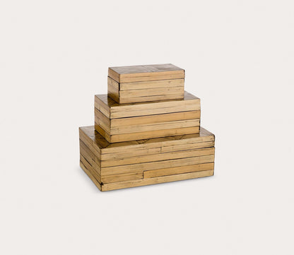 Style a well-appointed home with the versatile charm of Surya’s Cane Garden Box Set, including three small, medium, and large boxes. Blending effortlessly with casual or elevated aesthetics, these decorative wood boxes with lids feature a pieced design and a diamond-shaped pattern at the top. With weathered details for a collected touch— use these boxes to store keepsakes, tuck away remotes, or stow away keys near the entryway.