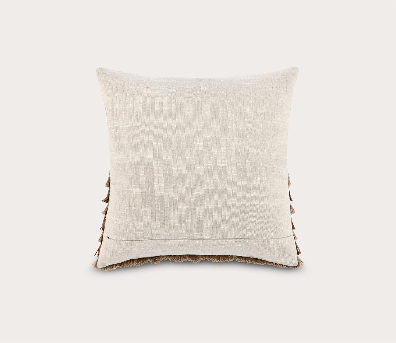 A stylish complement for rustic, farmhouse chic, or eclectic interiors, this decorative toss pillow includes a 100-percent cotton cover removable with a zip closure and a plush feather and down insert. Texturally intriguing with a fringe section, genuine leather and jute applique create a tiered design with light hand-applied embroidery.