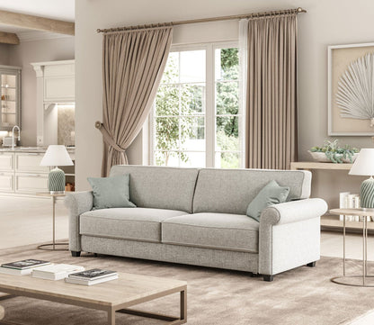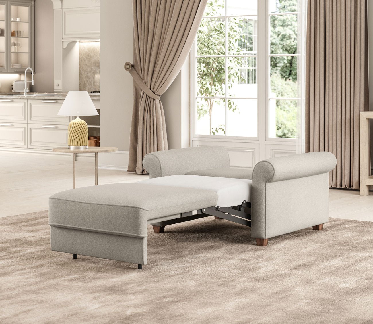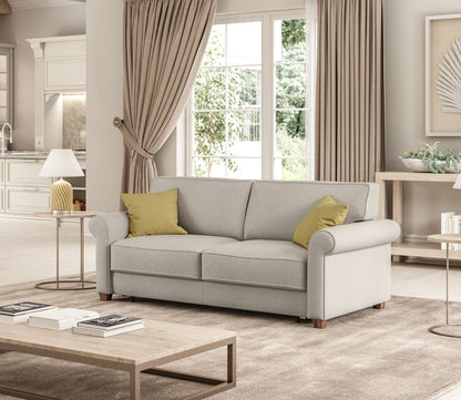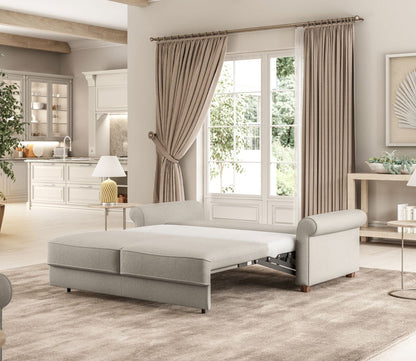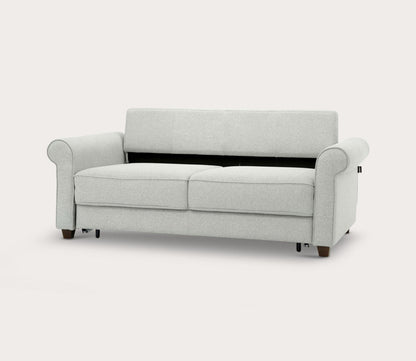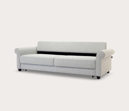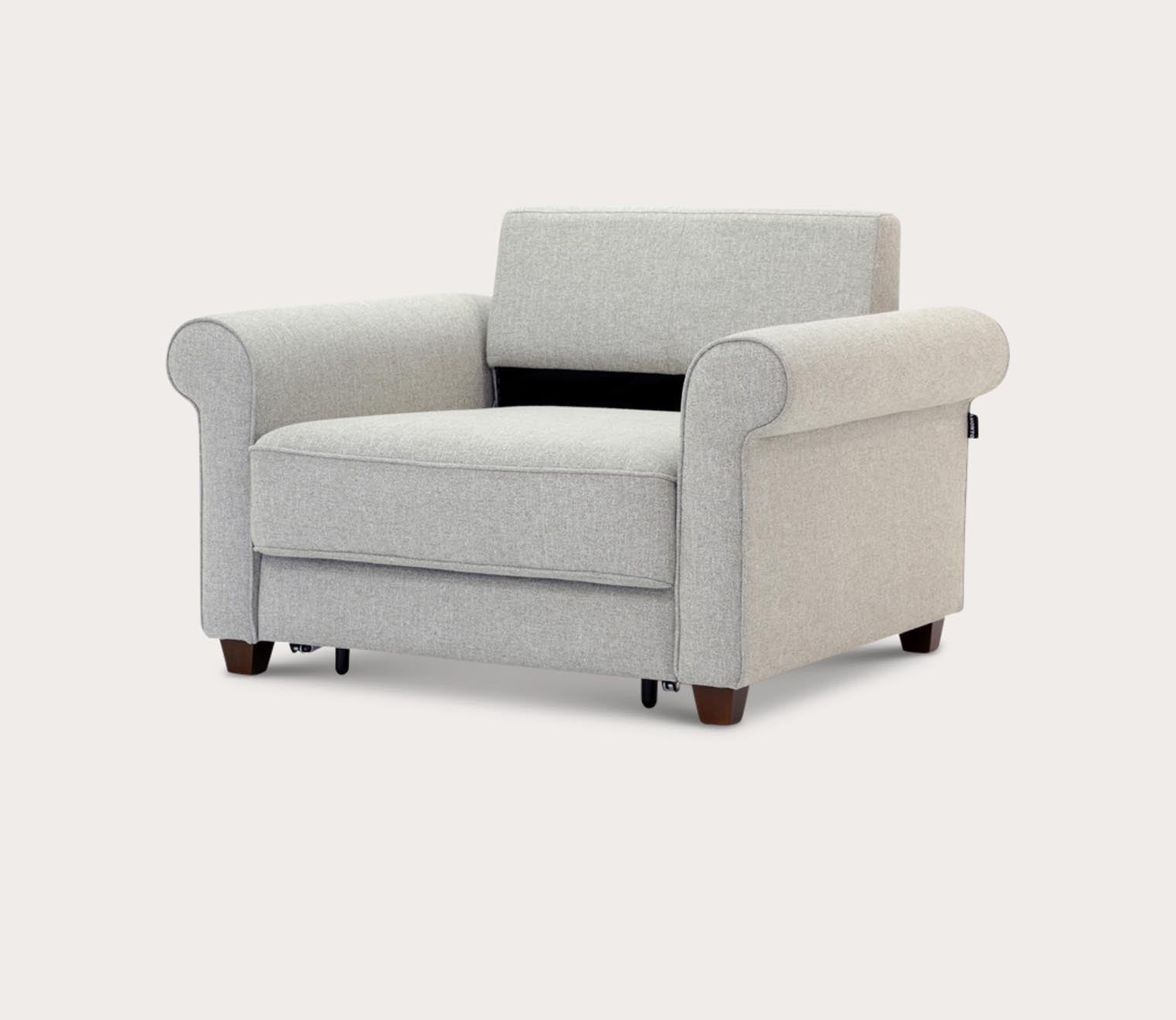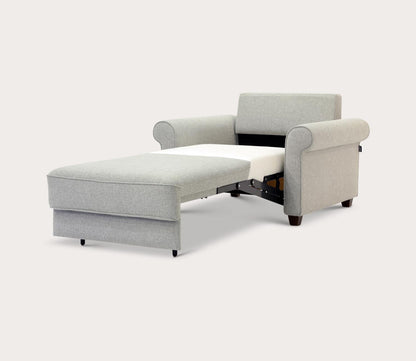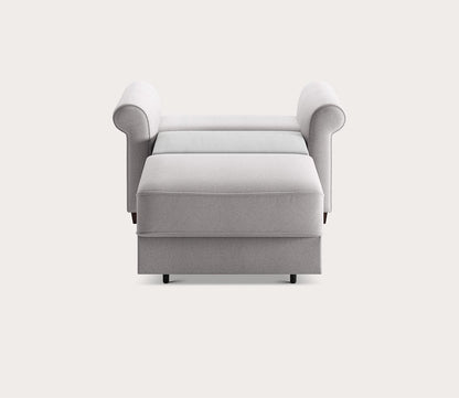 Whether used as a pull-out chair or a full-size sleeper sofa, the Casey transitions effortlessly into a comfortable sleep surface using Luonto’s innovative Hybrid Function. Its timeless silhouette, complete with traditional rolled armrests, blends seamlessly