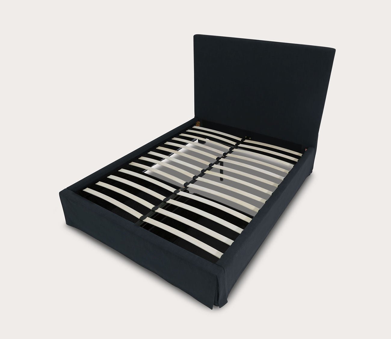 - Reverse-pleated bed skirt at each corner for a slim silhouette.