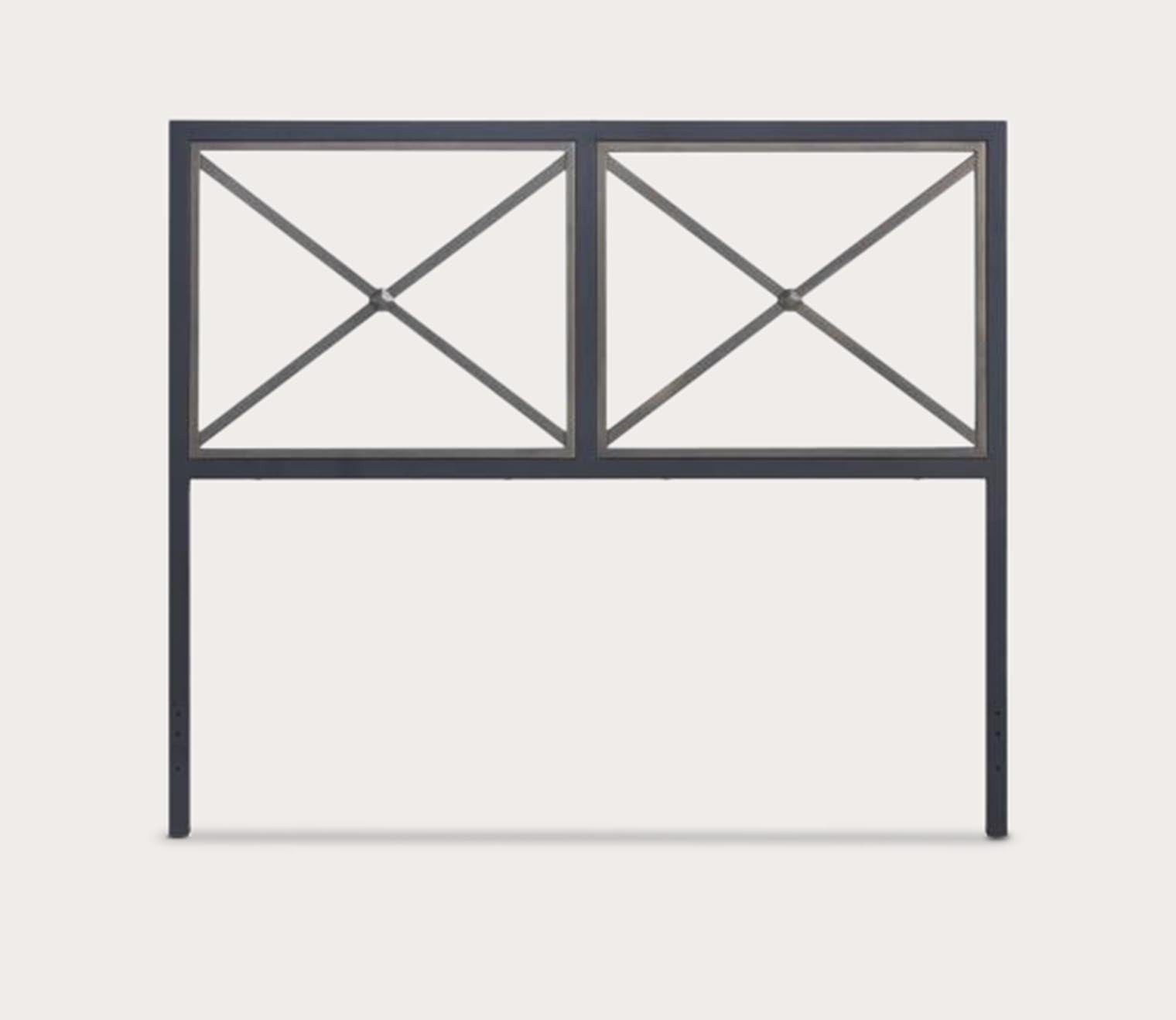 A striking centerpiece with a textured black and smokey grey bronze powder-coat finish, this 50-inch-tall decorative headboard boasts a minimalist design that lets the raw beauty of the metal shine. With clean openwork lines for airiness, the rustic-chic cross-design adds a touch of farmhouse charm with edgy sophistication.