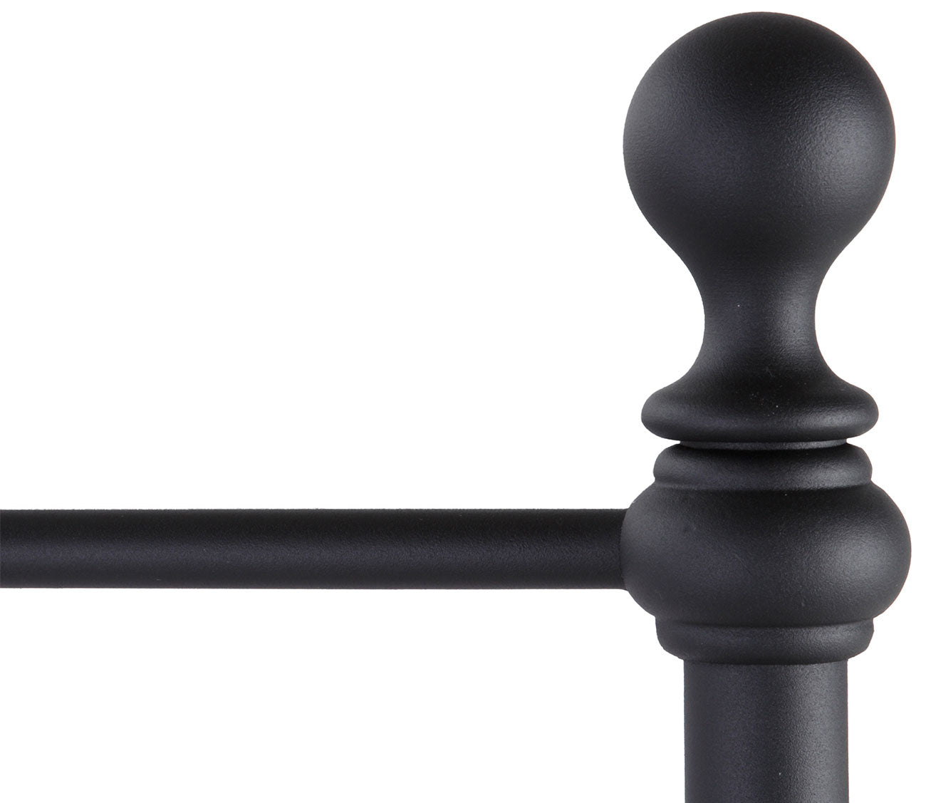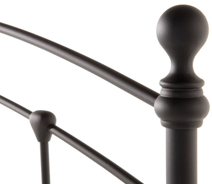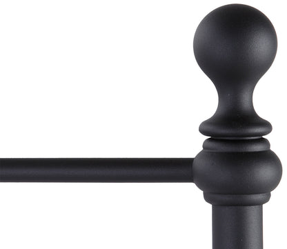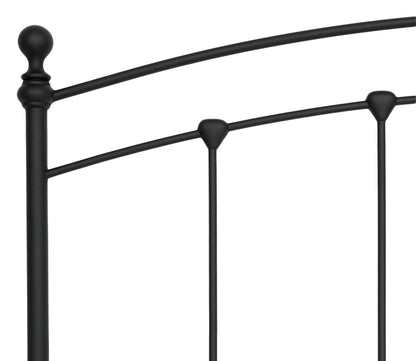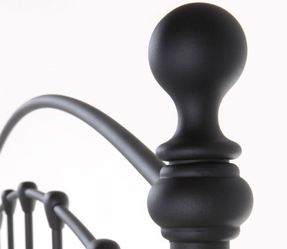Elevate your bedroom to a sanctuary of modern elegance with our City Mattress Odie Metal Headboard, available in twin, full, queen, or king size. The defining characteristic – a stunning matte black powder-coated finish – offers unparalleled versatility alongside the openwork silhouette that feels airy and light. Comprised of 5 intricately designed castings, this arched headboard boasts a curved silhouette with narrow spindles and finial posts, adding a touch of classic charm.