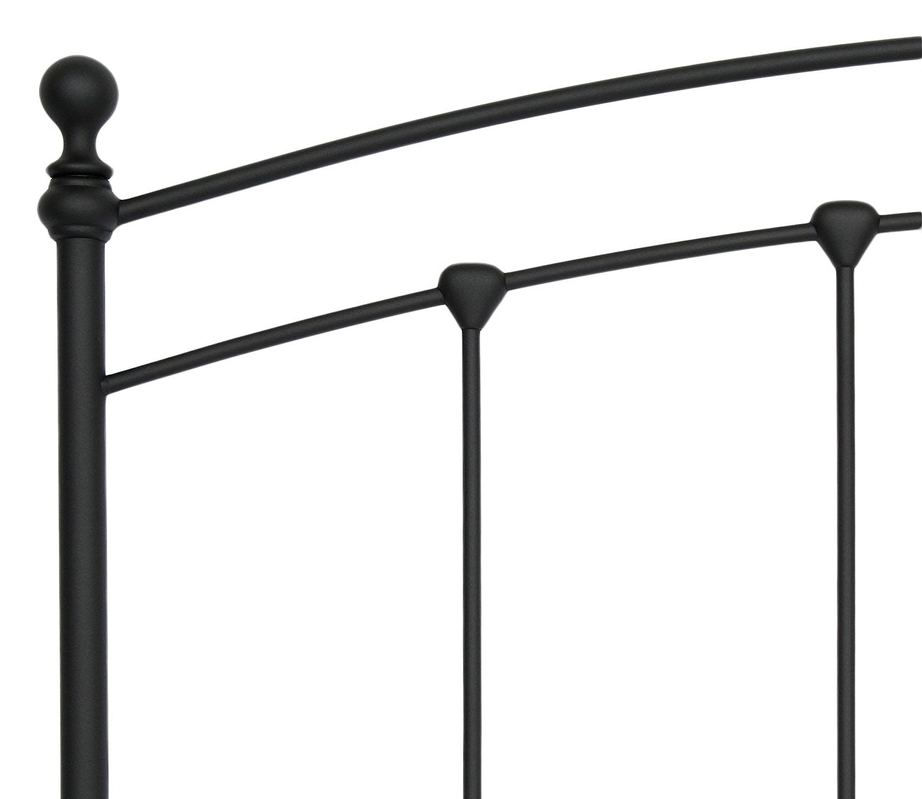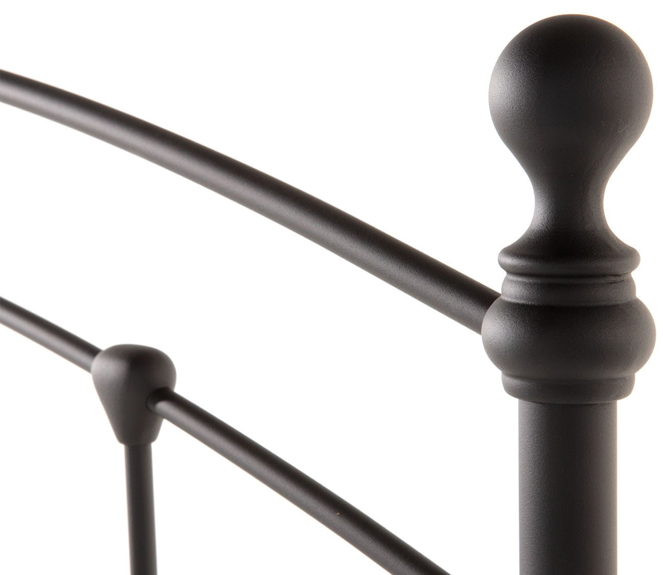 The defining characteristic – a stunning matte black powder-coated finish – offers unparalleled versatility alongside the openwork silhouette that feels airy and light. Comprised of 5 intricately designed castings, this arched headboard boasts a curved silhouette with narrow spindles and finial posts, adding a touch of classic charm.