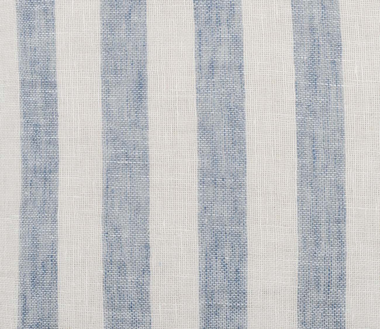 Including a luxury feather and down insert, this 18 x 18-inch square accent pillow features a removable 100-percent linen cover with a woven stripe design in contrasting blue and ivory tones for a timeless look with natural texture. Whether thrown on a bed, styled on a loveseat, or positioned on a window bench— narrow self-flange trims each side for a finished, tailored appeal.
