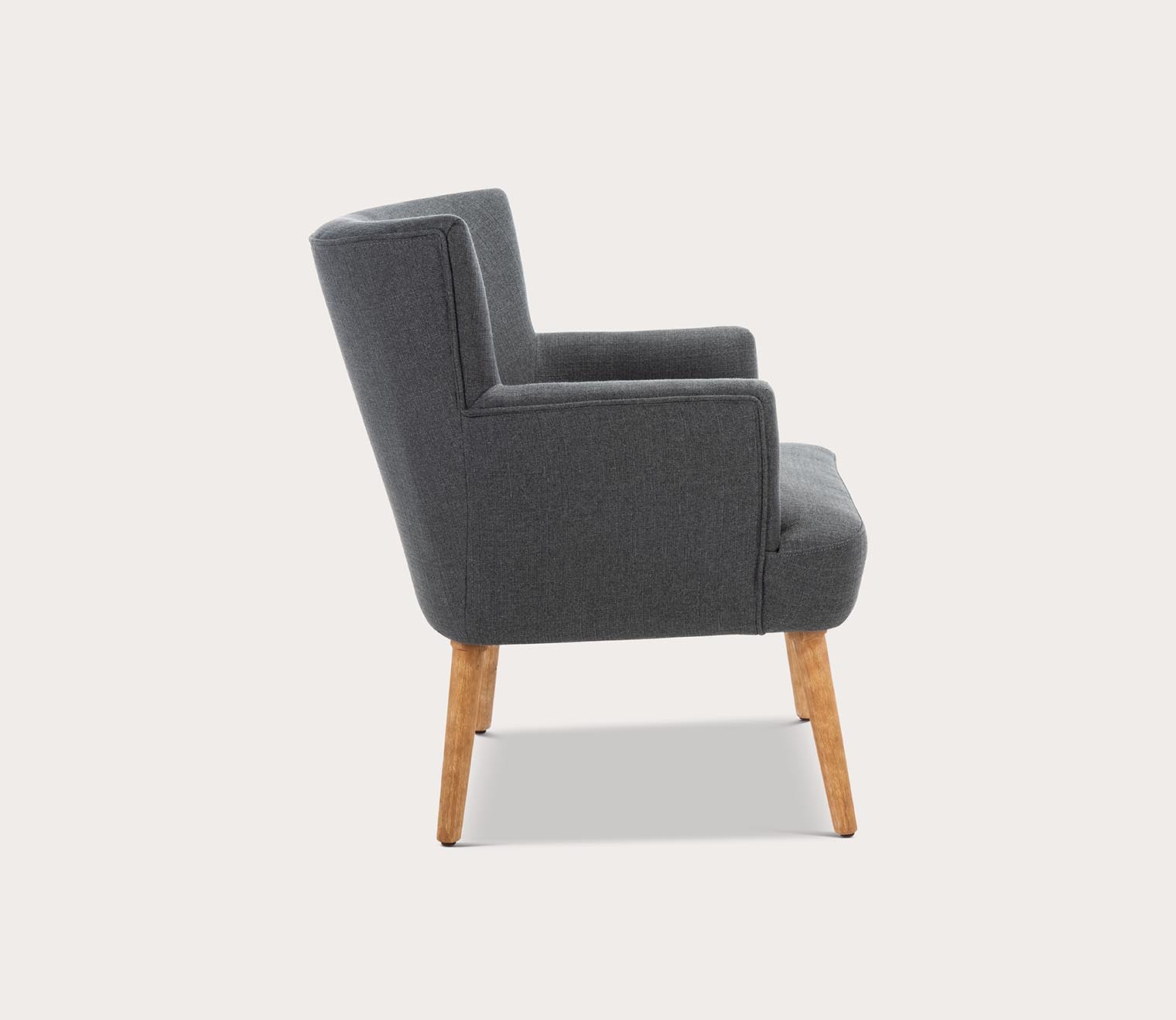 Reflecting its retro inspirations, this upholstered armchair features a sculpted wingback silhouette and tapered wooden legs. A contemporary style icon with comfortable cushioning and soft linen-like fabric— choose from the white or dark grey colorway to best fit your aesthetic.