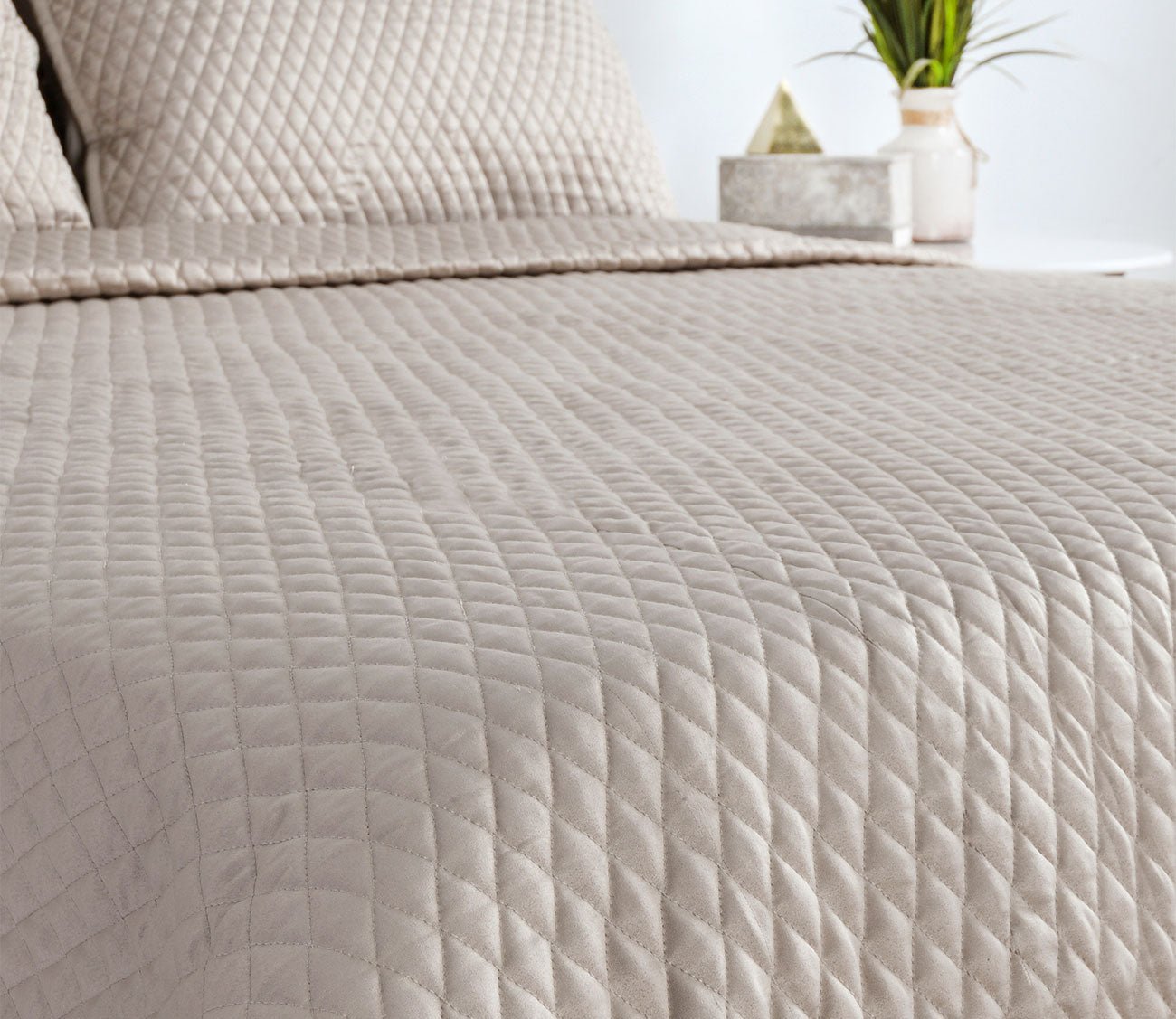 Add clean, contemporary layers to your bedding ensemble with Villa Home’s Diamond Pebble Sateen Quilt in queen or king size.