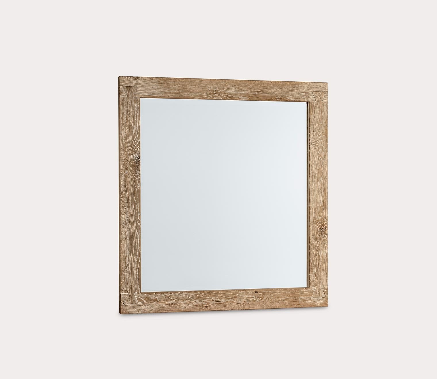 Complete your bedroom ensemble by arranging a dressing space with Vaughan Bassett’s Dovetail Wood Frame Landscape Mirror in Sun Bleached White. Handcrafted in the USA from solid white oak, this rectangular dresser mirror features a substantial wood frame with exposed dovetail joinery at each corner and a natural reclaimed wood look with well-aged splits, cracks, and knots. Perfect for an outfit check before you head out— the luxurious 34-inch silhouette displays a beveled glass center.