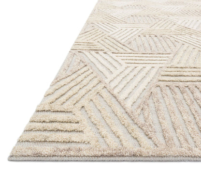 Soften your step and bring minimalistic style to your space by layering your floors with Loloi's Ehren Oatmeal Ivory Area Rug, available in a 5 x 8 or 8 x 10 size. Hand-tufted in India by master artisans for exceptional design and lasting quality, this neutral area rug features 100-percent wool yarns with a textured high-low pile for a three-dimensional look and feel. Inviting visual interest into your home— the light beige and ivory palette brightens up a room with the modern linear pattern in geometric shapes.