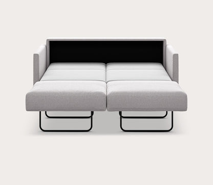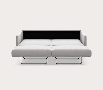 - Nest Function: Quickly converts into a supportive foam mattress bed. First, remove the back cushions. Each seat lifts up and then out to reveal the first portion of the sleep surface. Complete the bed by folding down the backrest insert.