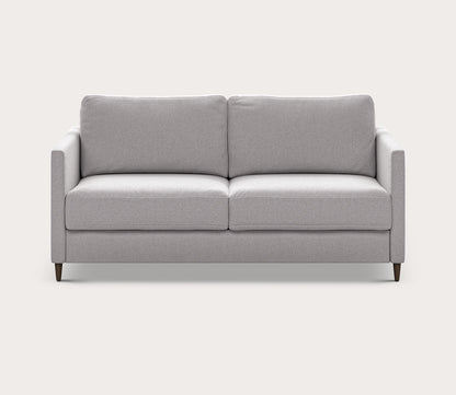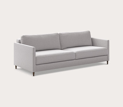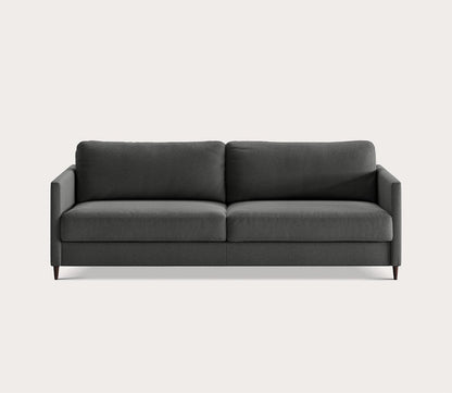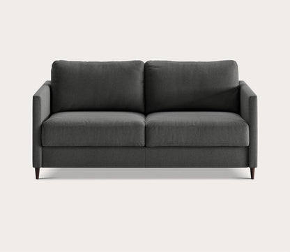 Experience the ultimate comfort with the high-quality design of Luonto’s Elfin Sleeper Sofa. Effortlessly accommodating overnight guests, this convertible pull-out couch features a dual-motion mechanism that swiftly transforms into a queen-size or king-size sleep surface with a foam mattress. Durable yet soft gray or graphite fabric covers the modern silhouette, including sleek track arms and two back cushions.
