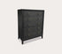 A masterclass in modern minimalist design, Bernards Furniture’s Elure Wood 5-Drawer Chest makes a statement and provides spacious storage in a vertically stacked silhouette. With rounded corners that soften each edge, this 54-inch tall chest of drawers transforms your bedroom sanctuary with high-quality materials, superior craftsmanship, and exceptional value. Made from solid rubberwood and poplar with elm veneer for enduring strength, the rich peppercorn black finish grounds your space with visual depth and luxe character.