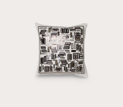Infuse edgy style and quality comfort into your space with Loloi’s Embellished Throw Pillow, available in an 18 x 18-inch square size. Including a plush polyfill insert for a huggable loft, this decorative toss pillow features a 100-percent cotton cover in solid white with mixed rectangular-shaped metal embellishments and beaded accents. Made in India with a dimensional look and well-crafted appeal, the metallic gold-tone adornments add a hint of shine to your seating arrangement.