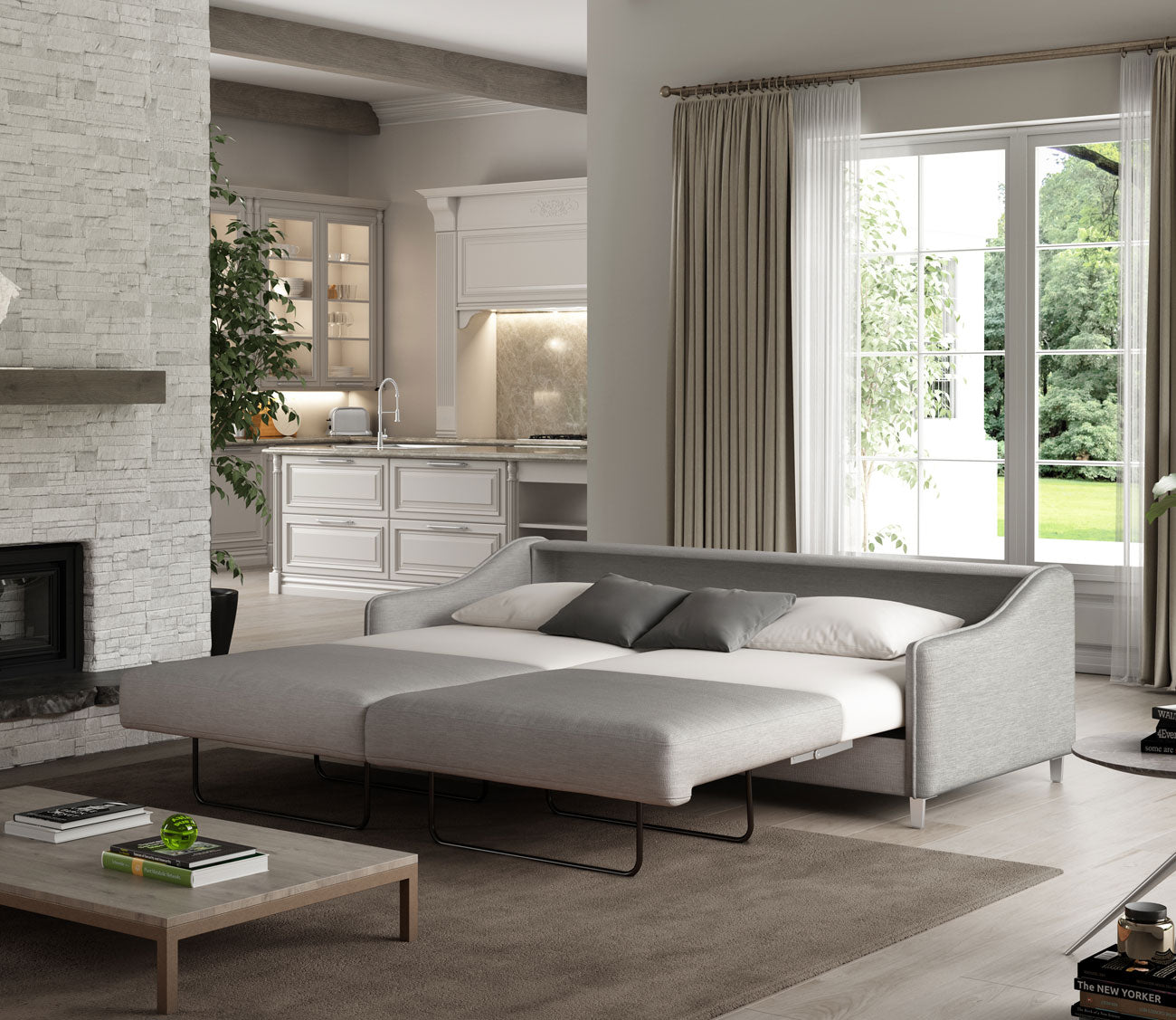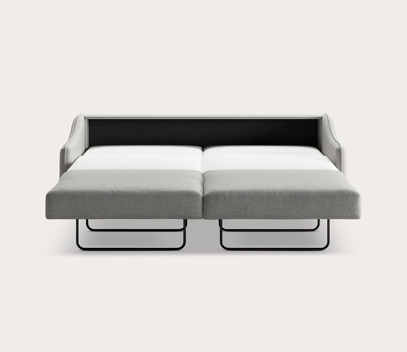 Nest Function — Smooth Dual-Motion Conversion: Simply remove the back cushions. Each seat lifts up and out to reveal the first part of the sleeping surface, then the backrest folds down to complete the mattress setup—all in one quick, intuitive motion.
