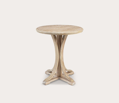 ONLINE ONLYInfuse your living space with the country farmhouse charm of Martha Stewart’s Fatima Round Wood Accent Table in a natural reclaimed wheat finish. Standing at 24-inches in height, this pedestal side table features an ash veneer manufactured wood construction, including a 21-inch-round tabletop with organic appeal and a neutral color palette for a functional, practical look with exposed woodgrain variation. A cross-leg pedestal-style base durably supports the versatile frame.