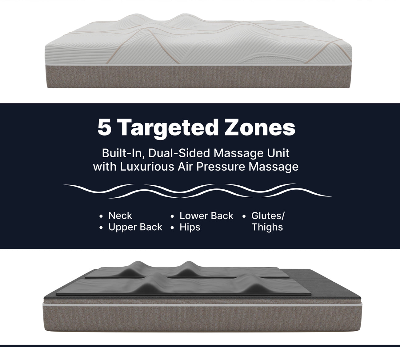 Benefits: Pressure relief, responsive support, massage relaxation, and airflow