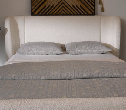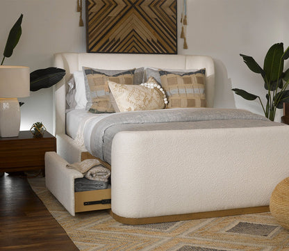 Cozy casual meets modern elegance with our CM Home™ Hugo Performance Fabric Upholstered Storage Bed, featuring an updated take on the timeless wingback silhouette. With a uniquely curved headboard and footboard with rounded edges and a wraparound design, this platform bed wrapped in white boucle or grey linen is anchored by an exposed wood plinth base with spacious drawers at both sides for convenient storage. Clad in high-quality performance-treated C-Zero Plus fabric upholstery with eco-friendly stain resistance— the platform base with wood slats ensures durable mattress support.
