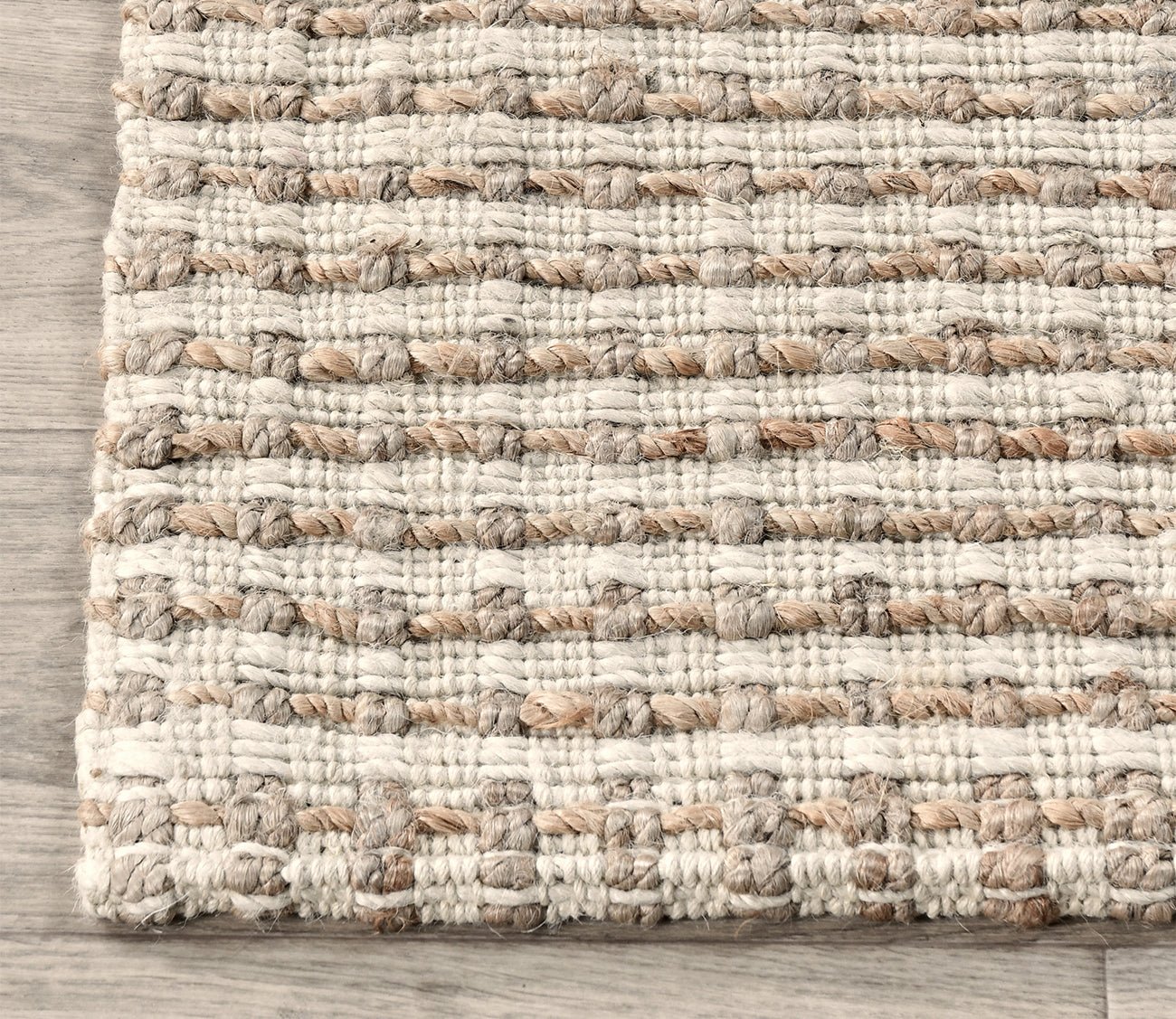 With a neutral color palette of beige and ivory tones, this handwoven area rug features 100-percent jute for a completely eco-friendly and sustainable design that works well in medium-traffic areas. Easily layering with various color palettes and aesthetics— style it for coastal contemporary or modern farmhouse interiors.