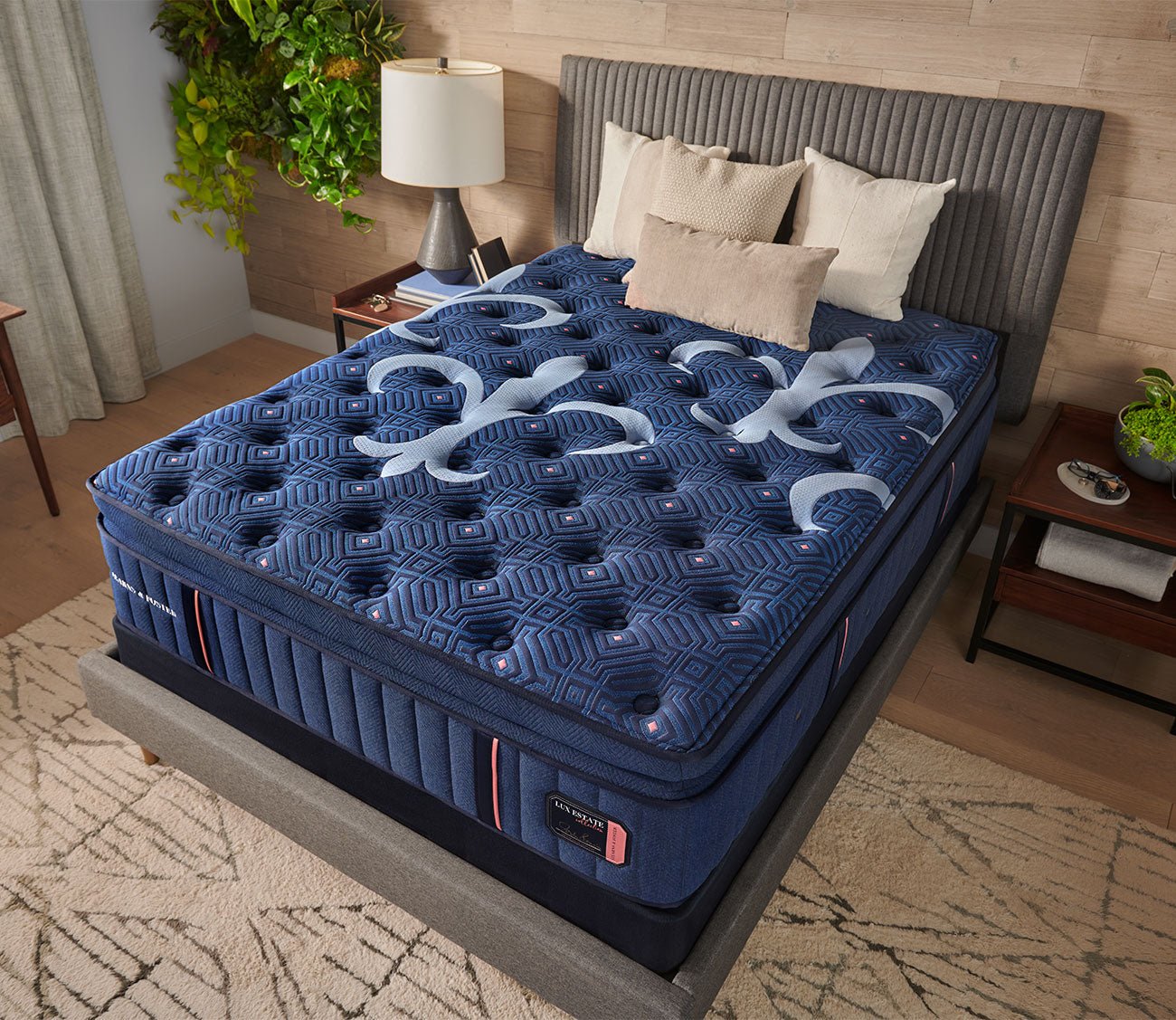 Part of Stearns & Foster’s best-selling Lux Estate Collection, the Plush Euro Pillow Top delivers the ultimate blend of softness, cooling, and full-body support. Its Euro Pillow Top design creates a smooth, cushioned surface that gently cradles your shoulders and hips, relieving pressure while maintaining ideal spinal alignment. Inside, TEMPUR-Indulge™ memory foam adapts to your body for personalized comfort and enhanced pressure relief. Cooling materials and airflow channels prevent overheating, and reinforced edges add stability that lasts for years.