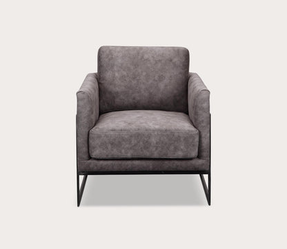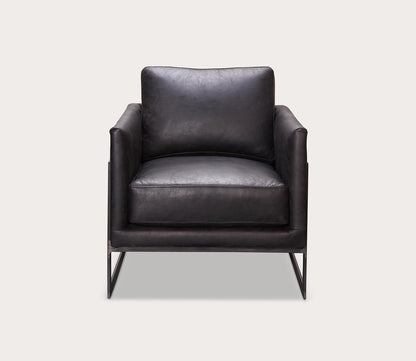Eye-catching style meets comfort and class with the Luxley Black Metal Frame Upholstered Club Chair from Moe’s Home Collection, available in black, brown, or grey. With clean, straight lines and thick foam padding, this 27-inch-wide accent chair features a deep seat with supportive armrests and a cushioning back, fully upholstered in luxurious velvety fabric or smooth top-grain genuine leather upholstery. An open iron metal frame with angular lines and a semi-cantilevered design supports the silhouette and creates a contemporary look.