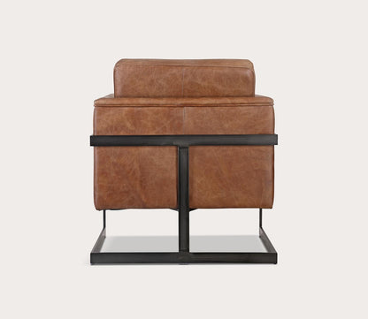 - Open metal frame armchair with velvet or top-grain leather upholstery