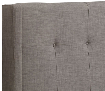 Transform your bedroom with the timeless elegance of Modus Furniture’s Madeleine Wingback Upholstered Headboard, available in full, queen, king, or California king size. Highlighted by button-tufted details for depth and character, this 54-inch-tall headboard features softly textured linen-like fabric upholstery in a warm grey tone that extends to the floor for full coverage. The sleek rectangular silhouette with narrow wingback sides forms a subtle shelter bed style, while the compatible design fits standard metal bed frames.