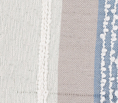 Mixed textures and colors create a uniquely bohemian look on Surya’s Manteo Throw Blanket that makes a stylish addition to your bedding or living room setup. Made in India with lightweight warmth for year-round use, this decorative throw blanket features cotton-blend fabric woven into a blocked stripe pattern in seafoam, light blue, and grey shades. Twisted fringe with knotted details adorns each edge, while white raised striping highlights the design.