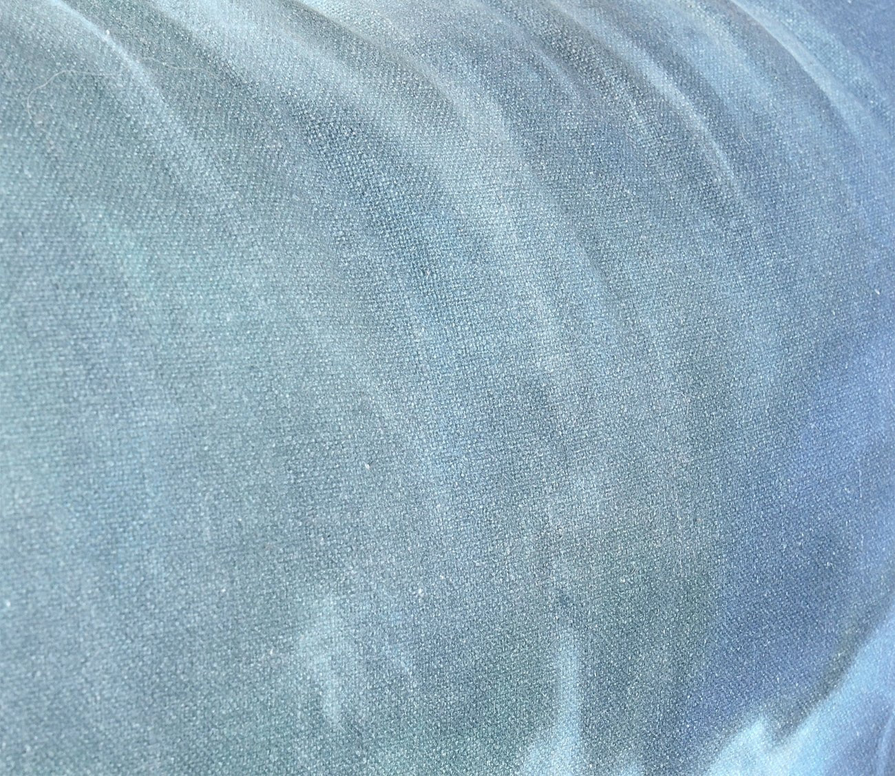 Generously sized with 16 x 36-inch large rectangular lumbar dimensions for ample sofa or bed coverage, this luxury accent pillow includes premium materials with a removable feather and down blend insert for gentle support and comfort. Digitally printed with ocean hues of Capri blue, the 100-percent cotton cover showcases transferred handmade artwork accented by a piping finish.