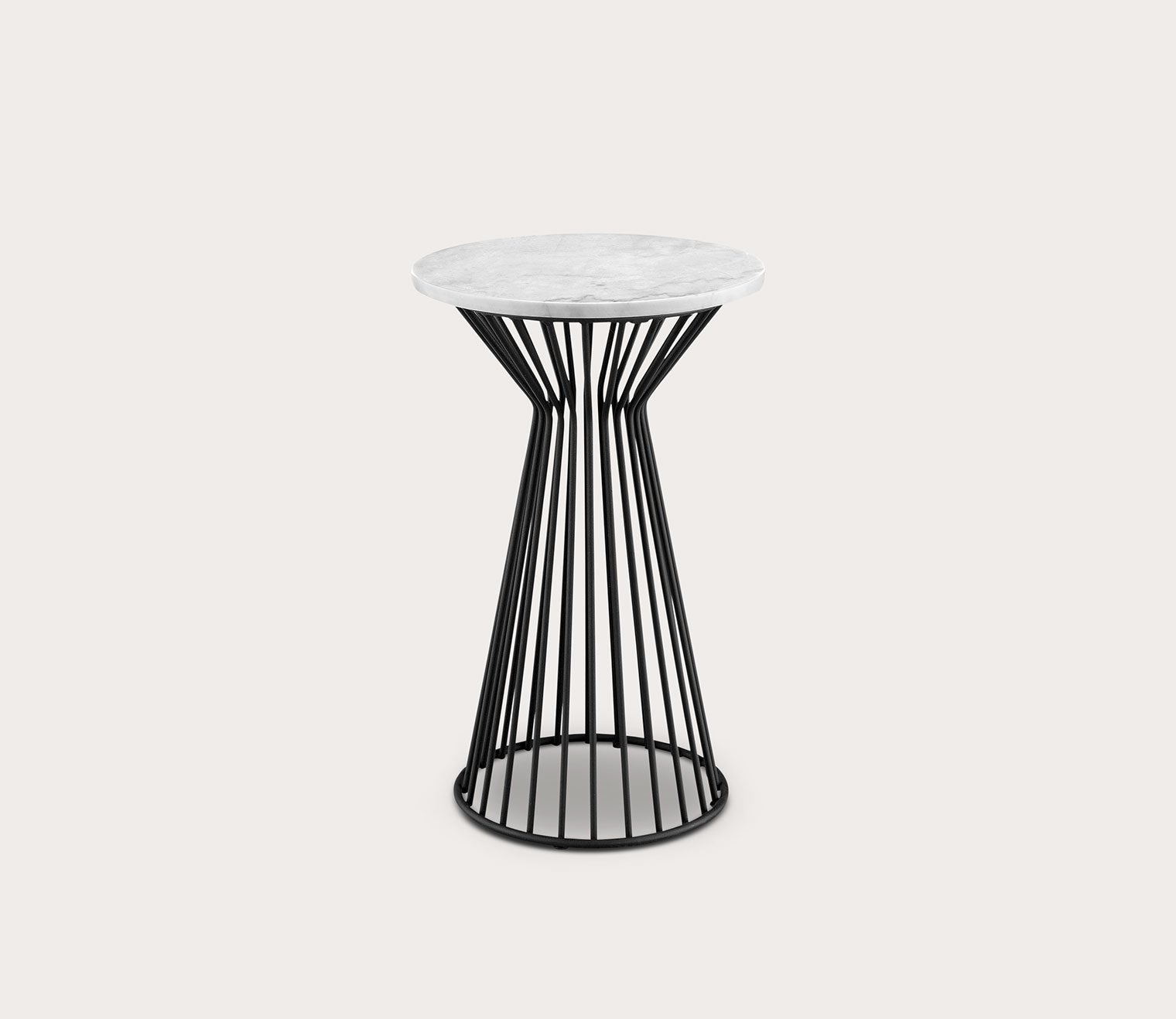 - Round white marble tabletop.