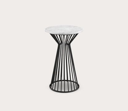 - Round marble side table with black metal pedestal base