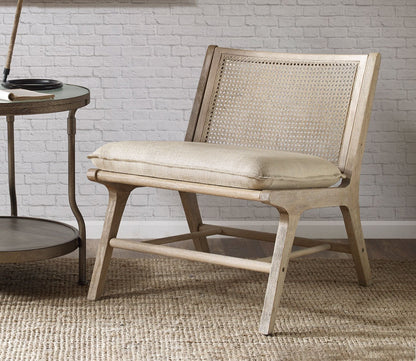 Introduce coastal allure into your living space with the natural design of INK + IVY’s Melbourne Cane Inset Wood Accent Chair. With an attached seat cushion and removable back cushion, this armless side chair features an exposed wood frame in a natural finish with a slightly reclined silhouette and woven cane inset at the backrest. Fitting flawlessly into farmhouse, bohemian, and traditional interior aesthetics— use it for spare living room seating or an accent piece in any room.
